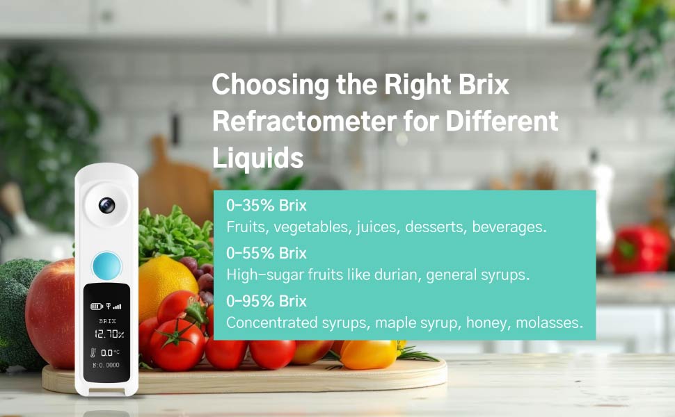• Highly Accurate & Precise: Test sugar content in a range of 0-32% with ±0.1% precision and 0.05% resolution for reliable results every time.
